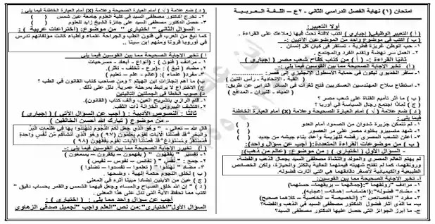 نماذج امتحانات اللغة العربية للصف الثانى الاعدادى الترم الاول 2020