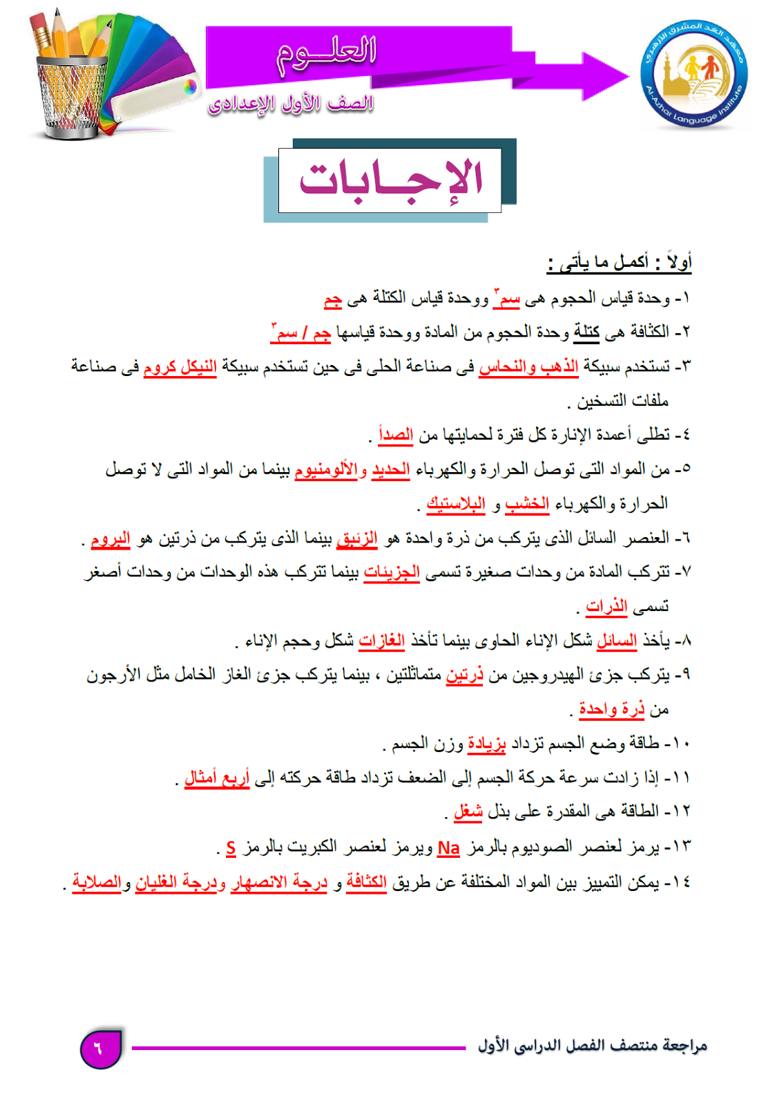 مراجعة علوم للاول الاعدادي الازهري ترم اول 2018