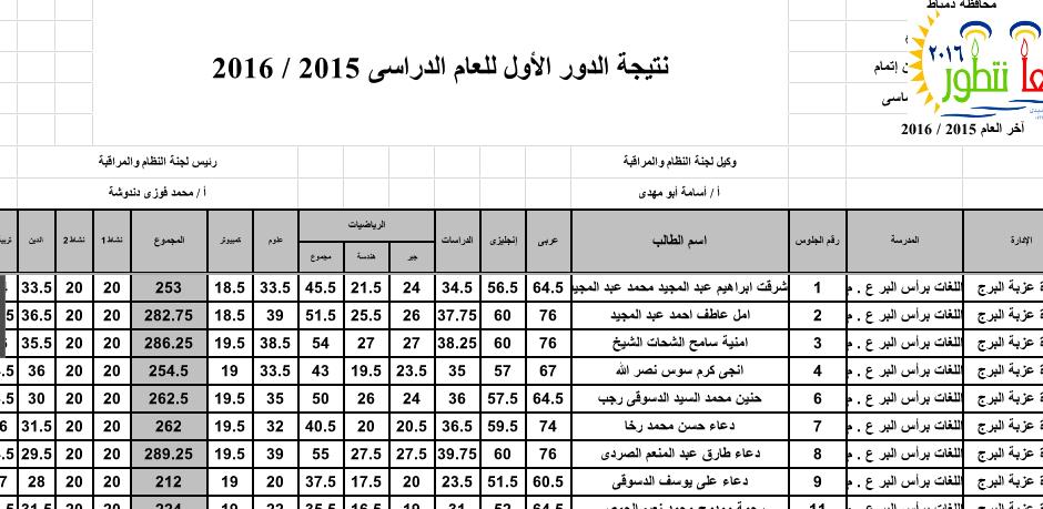 نتيجة الشهادة الاعدادية لمحافظة دمياط اخر العام 2016 فى ملف اكسل بالبحث بالاسم ورقم الجلوس