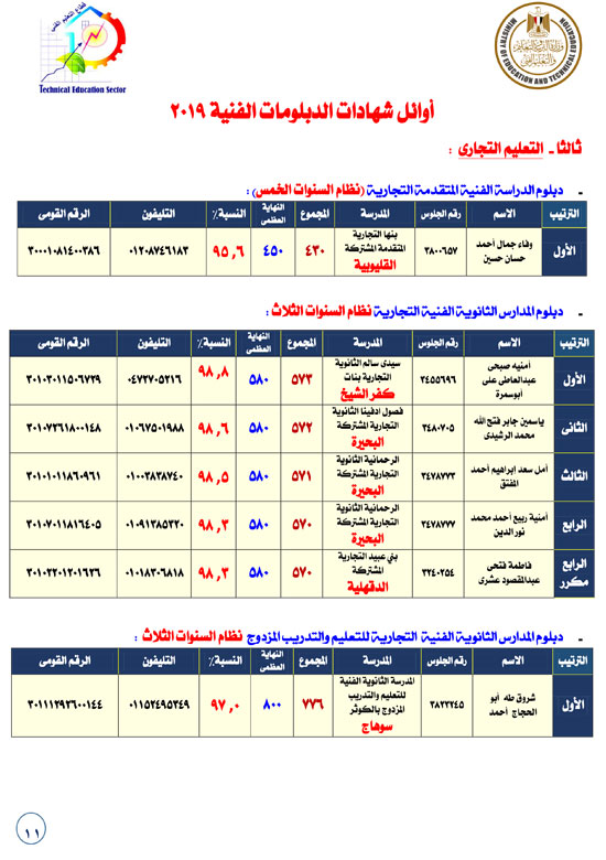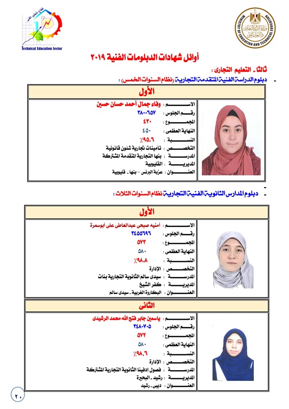 نتيجة الشهادة الثانوية التجارية 2018 برقم الجلوس عبر بوابة التعليم الفني اسماء أوائل دبلوم التجارة 2018 نجوم مصرية
