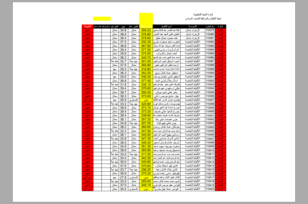 نتيجة السادس الابتدائى لمحافظة المنيا ترم ثانى روابط تحميل كل الادرات بملفات Pdf