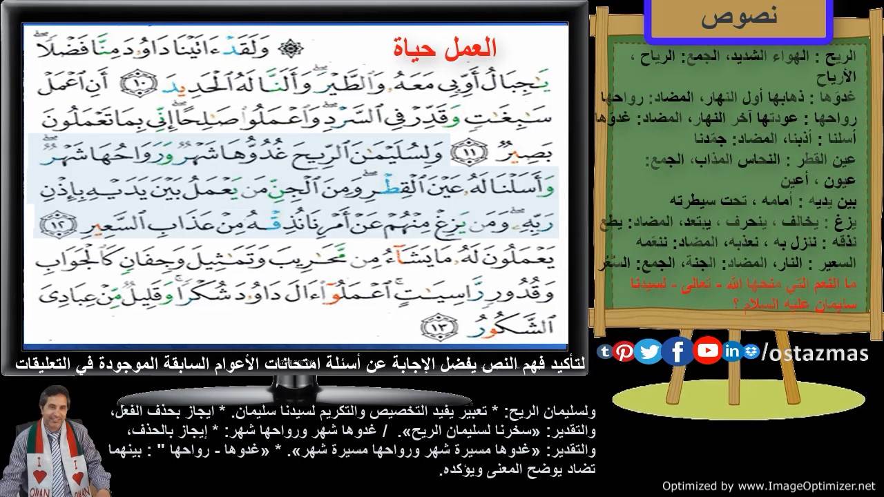 الوحدة الثانية العمل شرف العمل حياة سورة سبأ الصف الأول الأعدادي Youtube