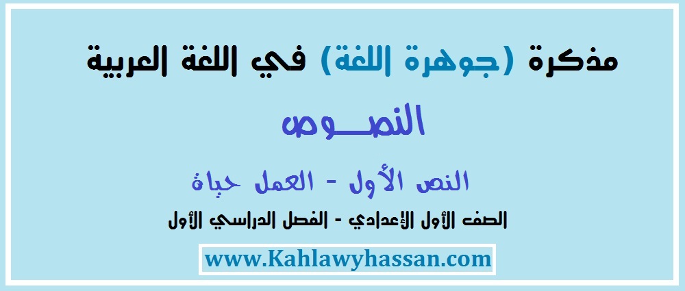 النصوص مراجعة أسئلة نص العمل حياة للصف الأول الإعدادي Kahlawy Hassan