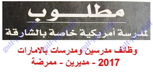 وظائف مدرسة خاصة في الشارقة الامارات للعام الدراسي 2017 2018 مطلوب مدرسين ومديرين وممرضة