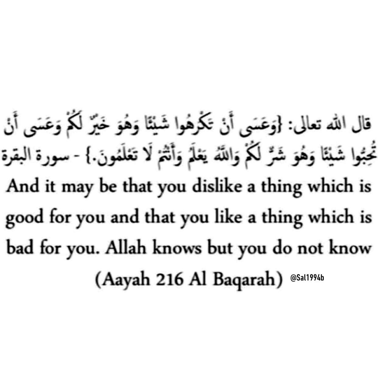 Anfal حلب Auf Twitter عسی ان تكرهوا شيئا وهو خير لكم وعسى ان تحبوا شيئا وهو شرا لكم و الله يعلم وانتم لا تعلمون Https T Co Uxrimpn7pg