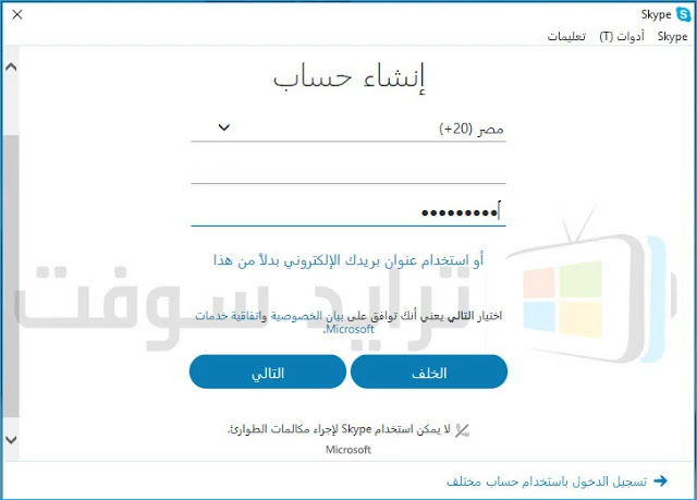 انشاء حساب سكايب Skype عربي شرح التسجيل في سكاي بي وتسجيل الدخول